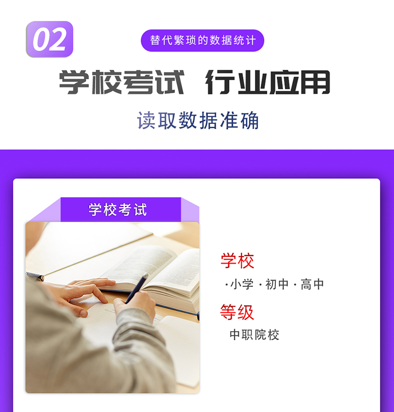 主要應(yīng)用于學(xué)校,培訓(xùn)機(jī)構(gòu),職業(yè)鑒定站,考試評(píng)卷、考試報(bào)名、多行業(yè)的測(cè)評(píng)、考核、選舉